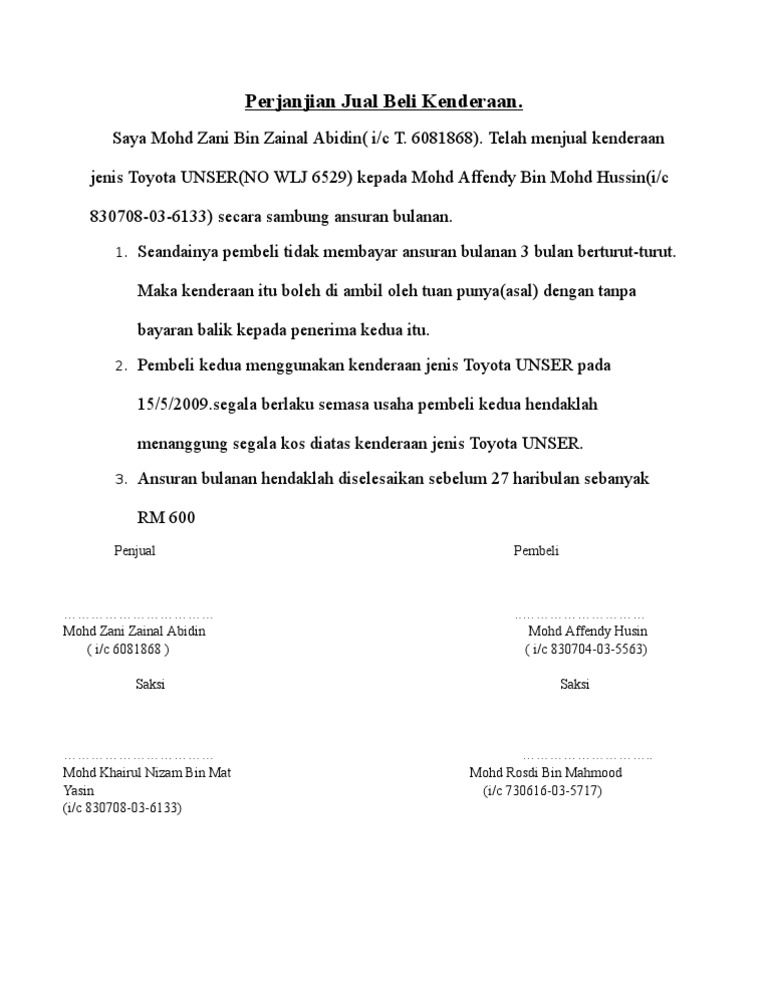 Surat Perjanjian Jual Beli Kereta A Pdf